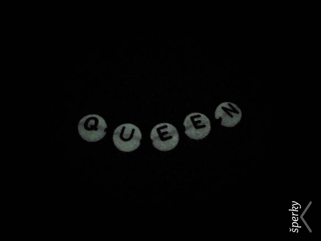Náramek je z nylonové šňůrky a svítících korálků 7 x 2 mm. Velikost je nastavitelná, univerzální dětská, dámská, nebo pánská.